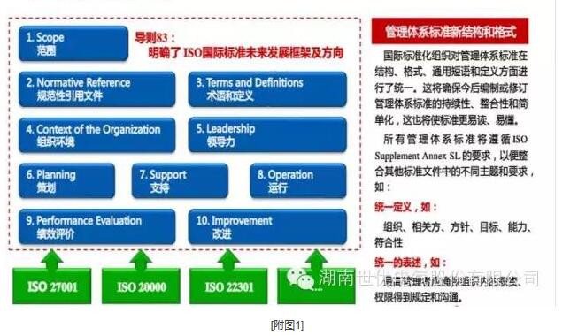 ISO9001:2015版標(biāo)準(zhǔn)的主要變化在于其結(jié)構(gòu)和格式的變化,包括:采用了管理體系標(biāo)準(zhǔn)新通用的框架(見附圖1),以及增加了風(fēng)險的重要性,風(fēng)險識別和風(fēng)險控制成為標(biāo)準(zhǔn)的要求,要求最高管理層在協(xié)調(diào)質(zhì)量方針與業(yè)務(wù)需要方面采取更積極的職責(zé)。