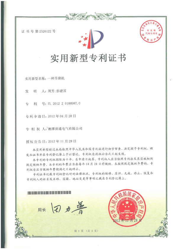 ◆ 本公司塔筒專用升降機(jī)獲得多項(xiàng)國家專利