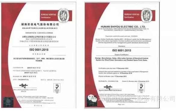 世優(yōu)電氣順利通過ISO9001:2015體系認證審核!并成為湖南省首家獲取相關認證證書的廠家!